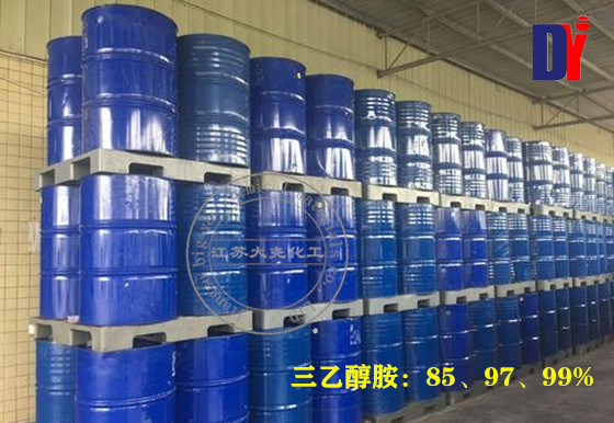 三乙醇胺:無色至淡黃色透明粘稠液體,微有氨味,低溫時(shí)成為無色至淡黃色立方晶系晶體。露置于空氣中時(shí)顏色漸漸變深。易溶于水、乙醇、丙酮、甘油及乙二醇等,微溶于苯、乙醚及四氯化碳等,在非極性溶劑中幾乎不溶解。5℃時(shí)的溶解度:苯4.2%、乙醚1.6%、四氯化碳0.4%、正庚烷小于0.1%。呈強(qiáng)堿性,0.1mol/L的水溶液pH為10.5。有刺激性。具吸濕性。能吸收二氧化碳及硫化氫等酸性氣體。純?nèi)掖及穼︿摗⑩?、鎳等材料不起作用,而對銅、鋁及其合金有較大腐蝕性。與一乙醇胺及二乙醇胺不同之處是,三乙醇胺與碘氫酸(HI)能生成碘氫酸鹽沉淀。江蘇大堯化工主營的三乙醇胺嚴(yán)格執(zhí)行國家認(rèn)定的行業(yè)技術(shù)標(biāo)準(zhǔn),造就了產(chǎn)品的優(yōu)良品質(zhì),為需求群體節(jié)約了成本,創(chuàng)造了可觀的經(jīng)濟(jì)價(jià)值,在全國贏得了較好的信譽(yù)和評價(jià)。