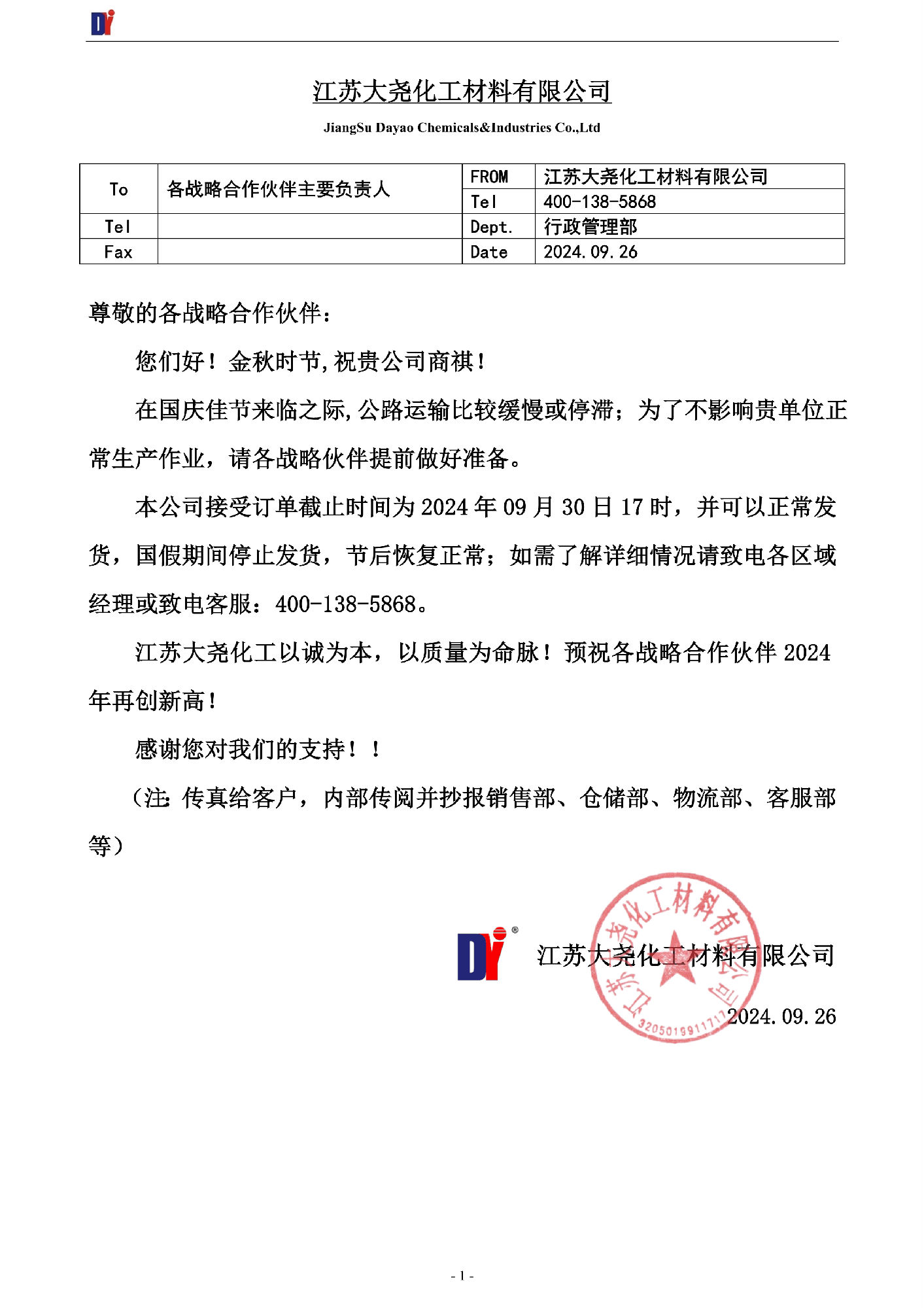 江蘇大堯化工材料有限公司祝大家開工大吉